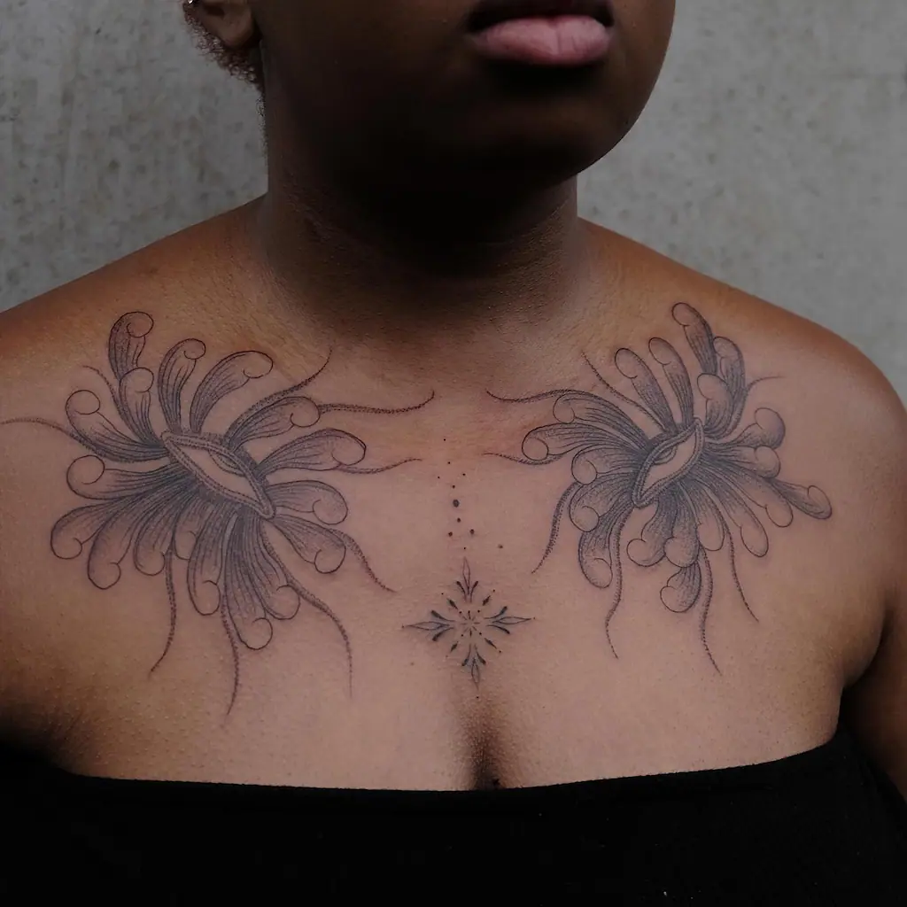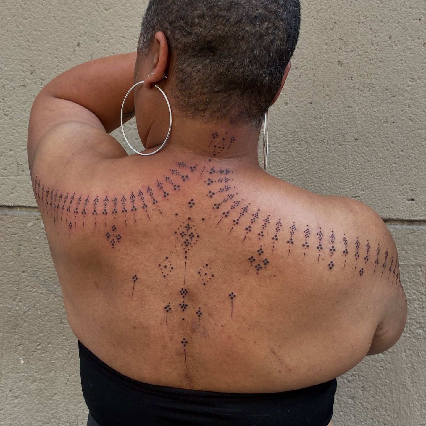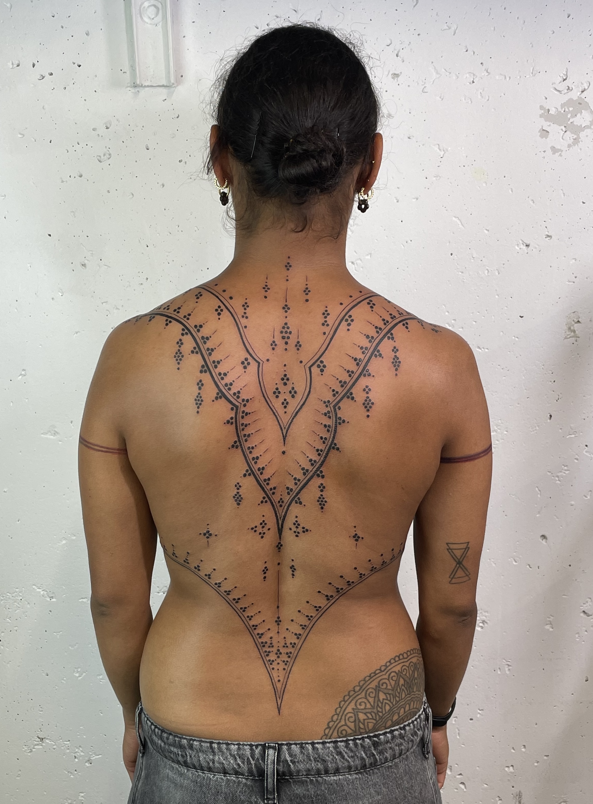 "Un lieu qui mérite toute la lumière qu'il mérite ! Tant pour tous les artiste qui y résident et leurs univers. Mais surtout pour le talentueux JustPigment qui a su mettre à l'honneur mon projet de tatouage avec beaucoup d'intensité et d'implication. Je suis une femme noire tatouée et le fait de pouvoir partager et échanger dans un milieu safe où les peaux, les histoires, et le respect des noires sont à l'honneur, je ne peux que recommander."