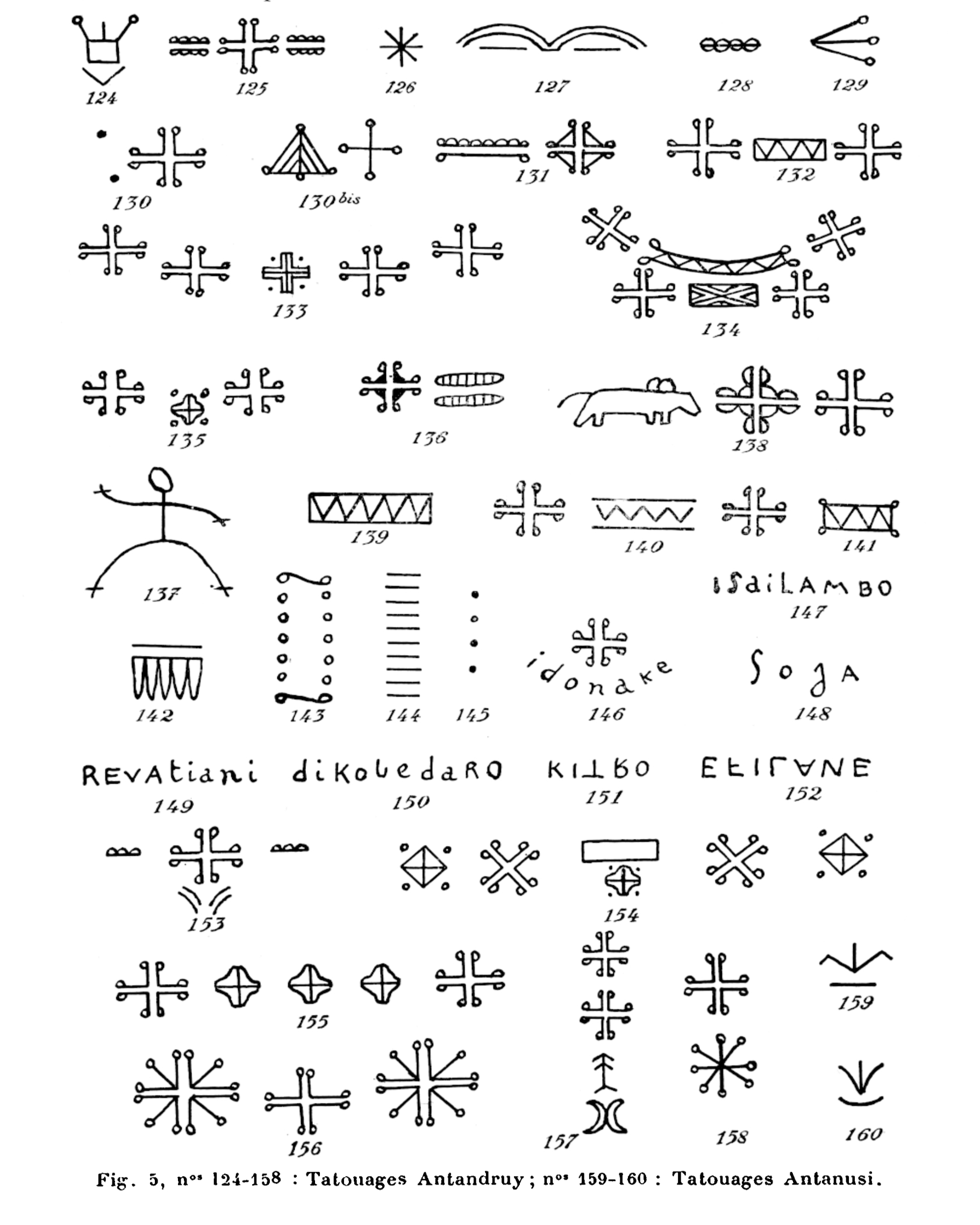 L’essentiel des connaissances actuelles sur les tatouages traditionnels de Madagascar provient du travail du chercheur et ethnographe Raymond Decary (1891–1967).